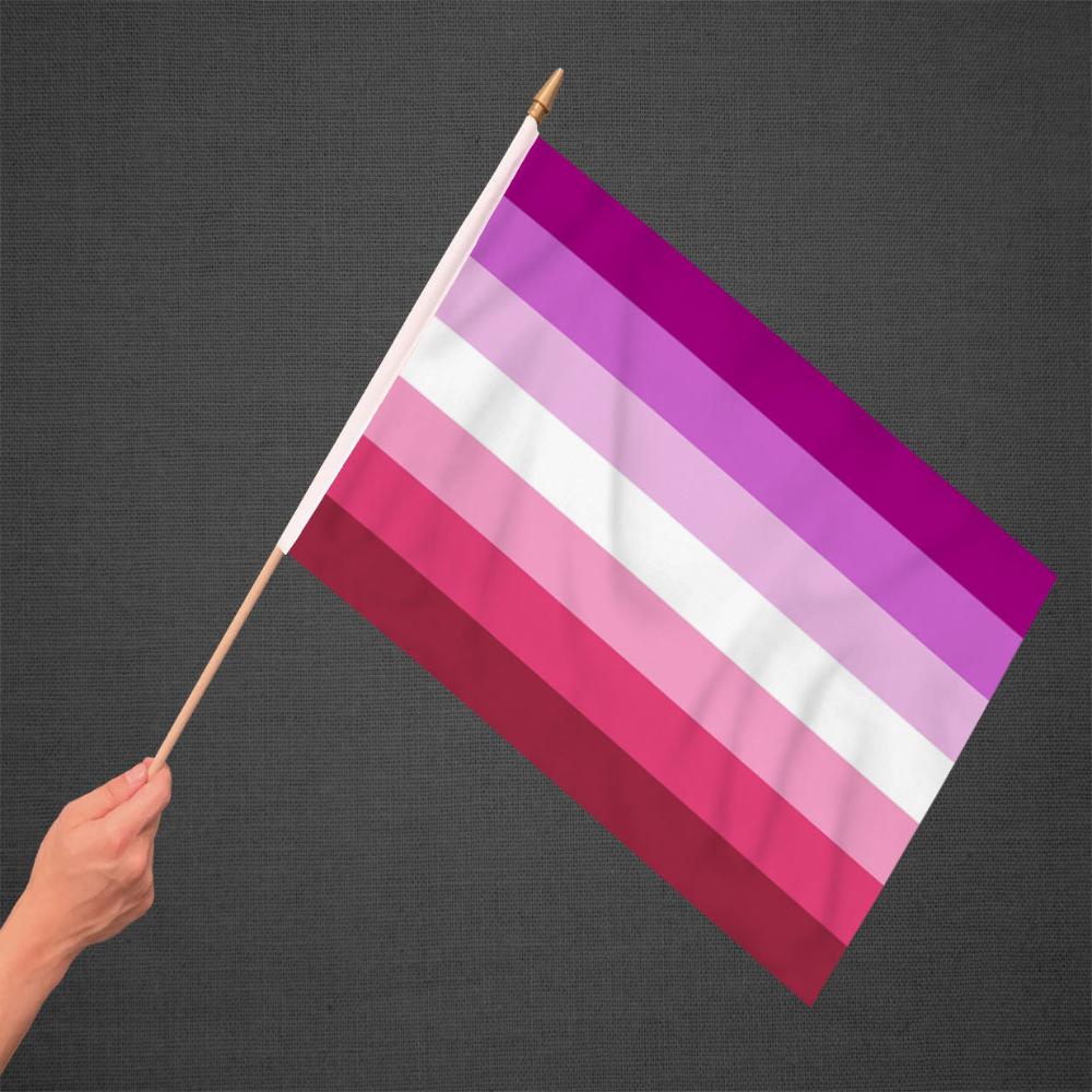 This 12x18in Pink Lesbian flag features 7 different colored stripes in varying shades of pink. This iteration is meant to celebrate lesbians who identify as more feminine, but do not identify as a 'Lipstick Lesbian'.