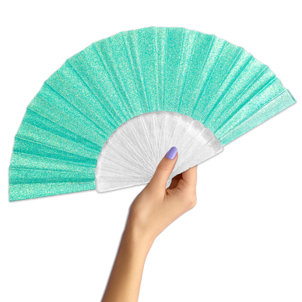 Mermaid Green Glitter Small Hand Fan (Clear Handle)