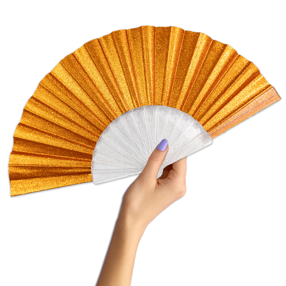 Crafted with vibrant Orange Glitter fabric, it catches the light (and everyone's attention) with every flick. The built-in charm loop lets you personalize your fan with keychains, charms, or ribbons—so you can make it as unique as you are.